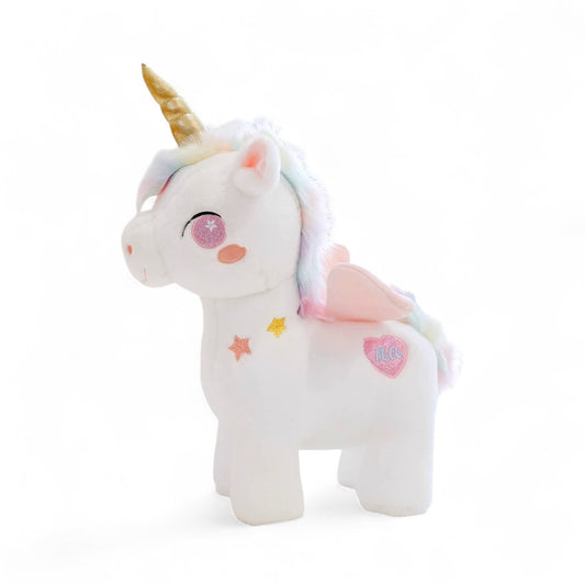 Licorne en peluche debout à crinière colorée
